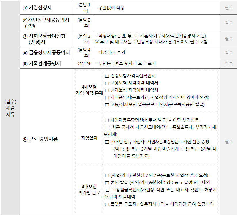 여기서 근로 증빙 서류의 경우 4대보험 가입 이력이 존재하는 다음 서류를 일컫습니다.