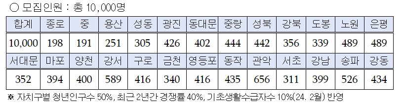 - 서울시 거주 만 18세 ~ 만 34세 근로 청년